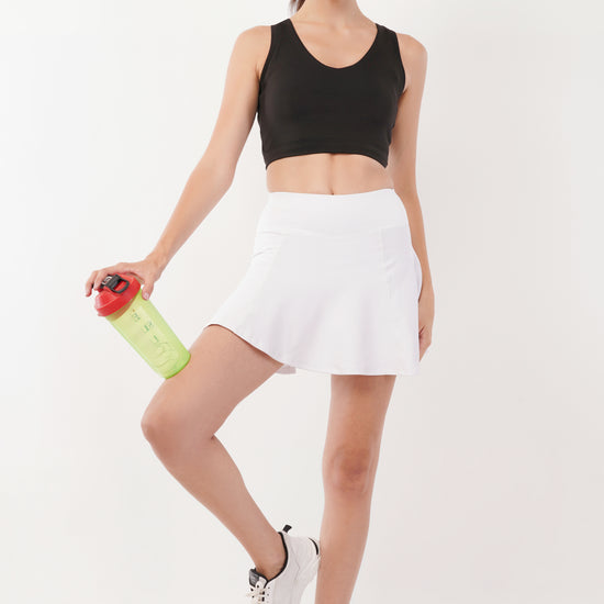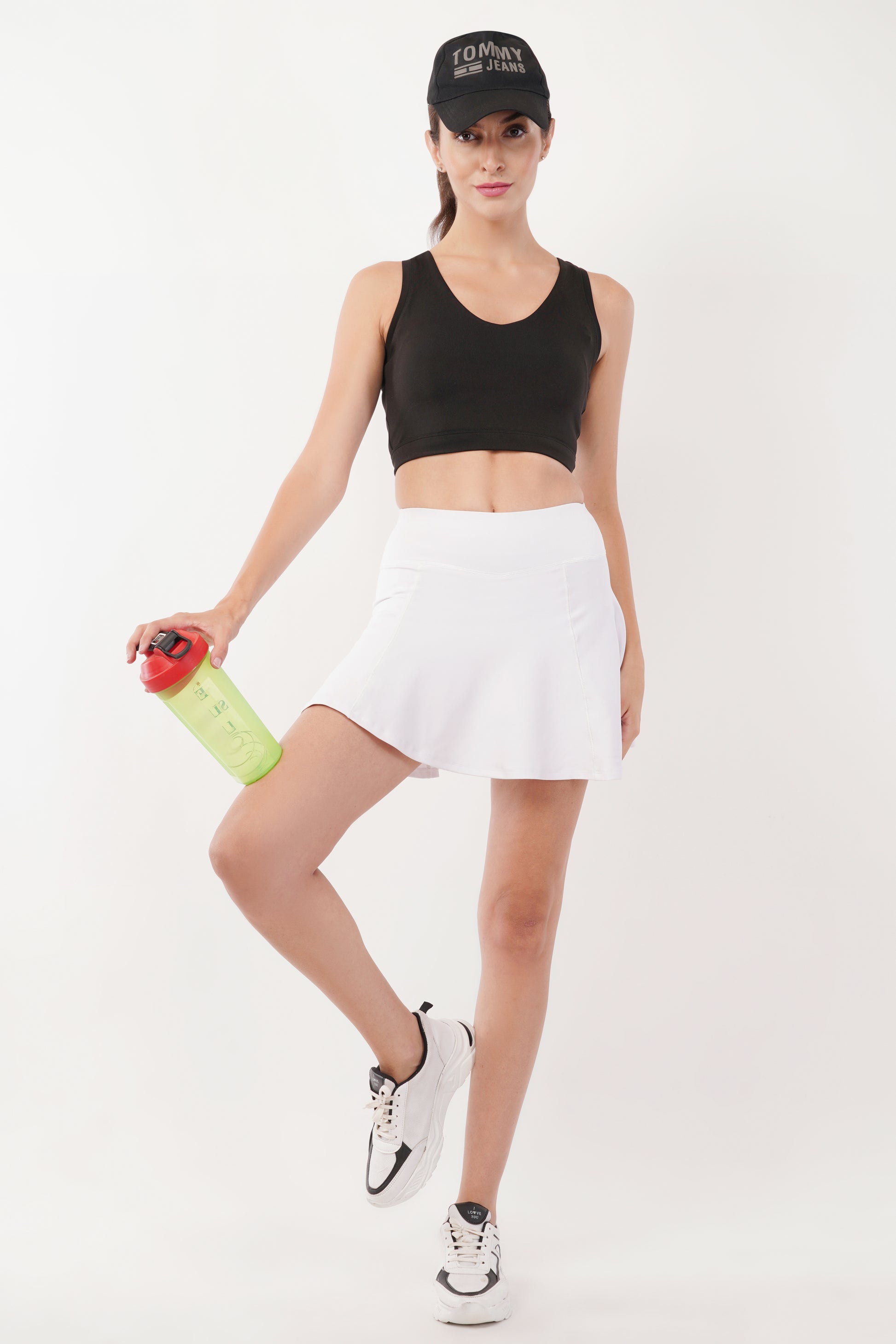 This skirt features built-in inner shorts, offering comfort and ease for everyday wear.