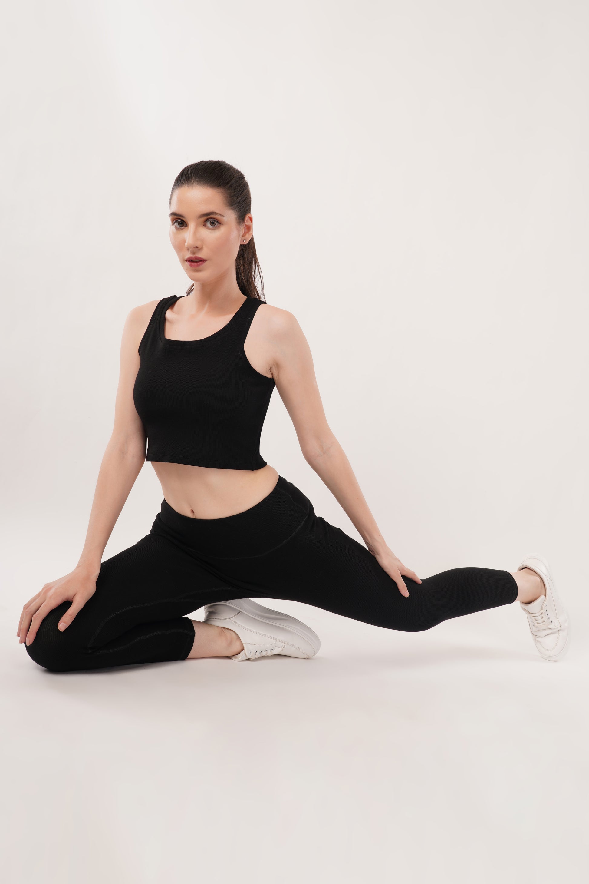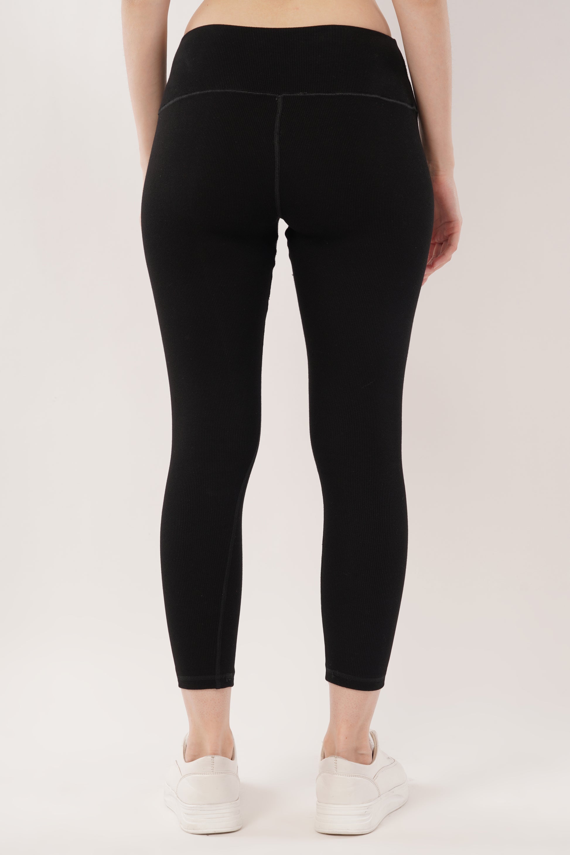 These IH Rib Leggings offer gentle support with a high-waisted design, crafted from soft ribbed cotton for comfort and style.