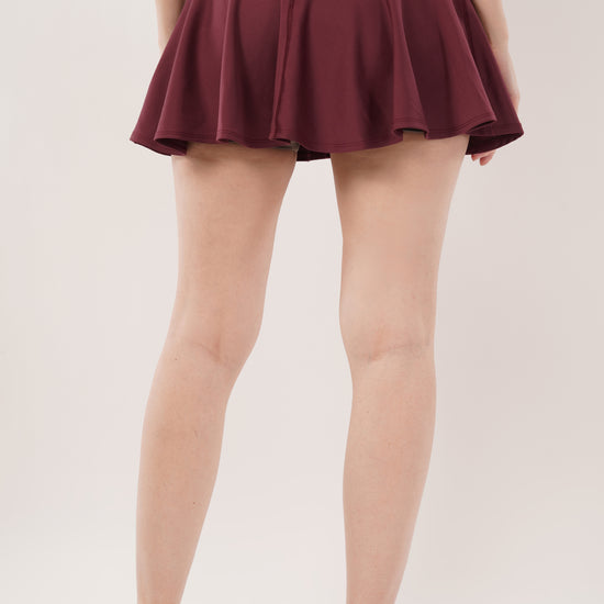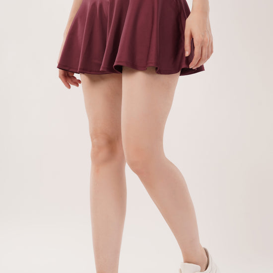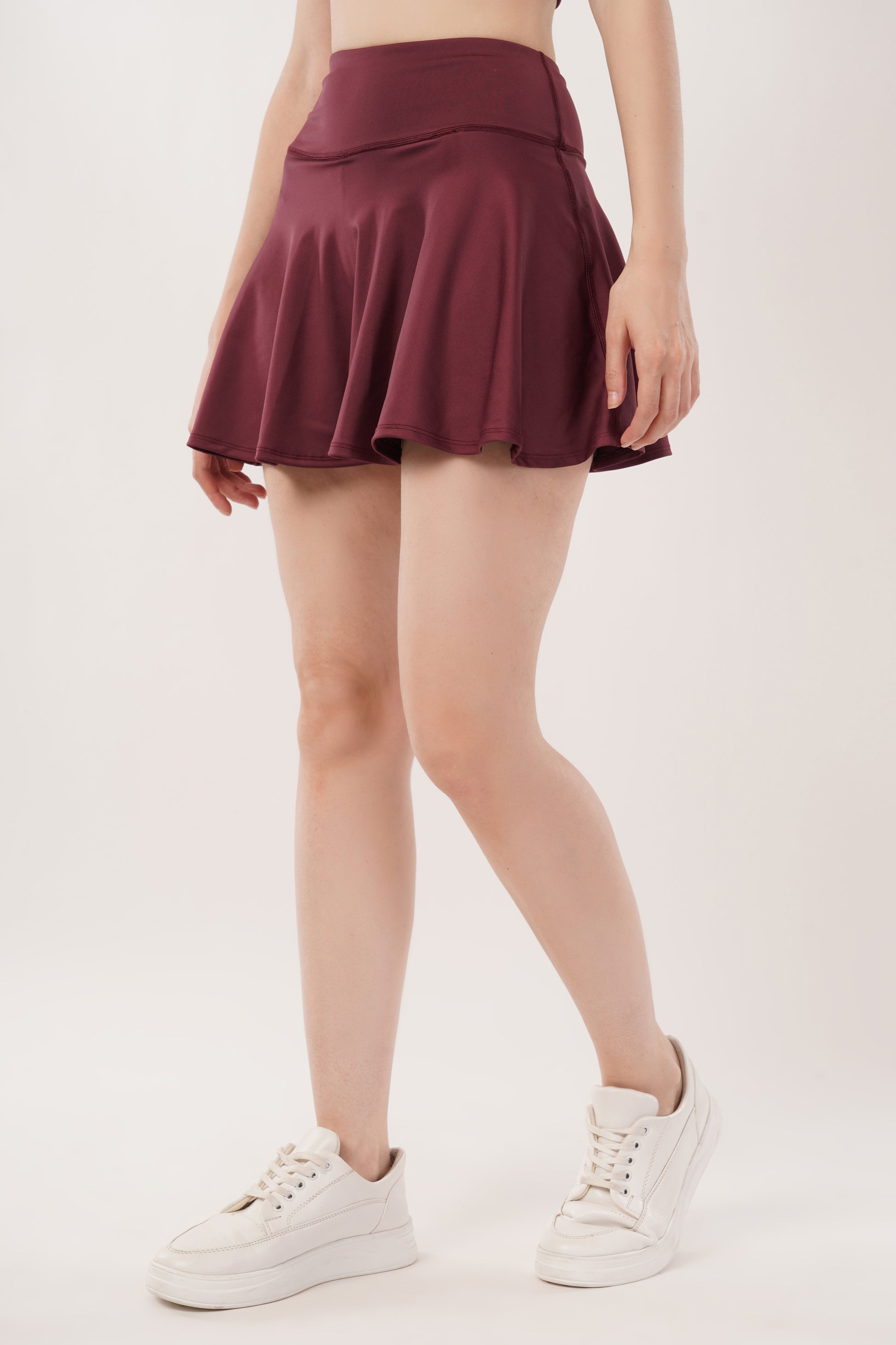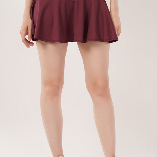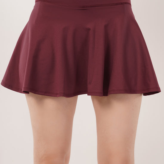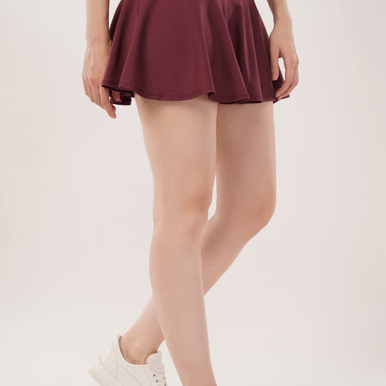 This skirt features built-in inner shorts, combining style with added comfort for everyday wear.