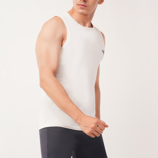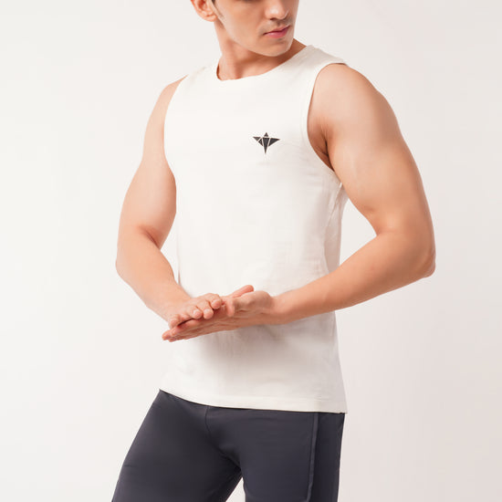 This sleeveless T-shirt offers a luxurious feel with its soft, high-quality fabric, perfect for comfort and style in warm weather.