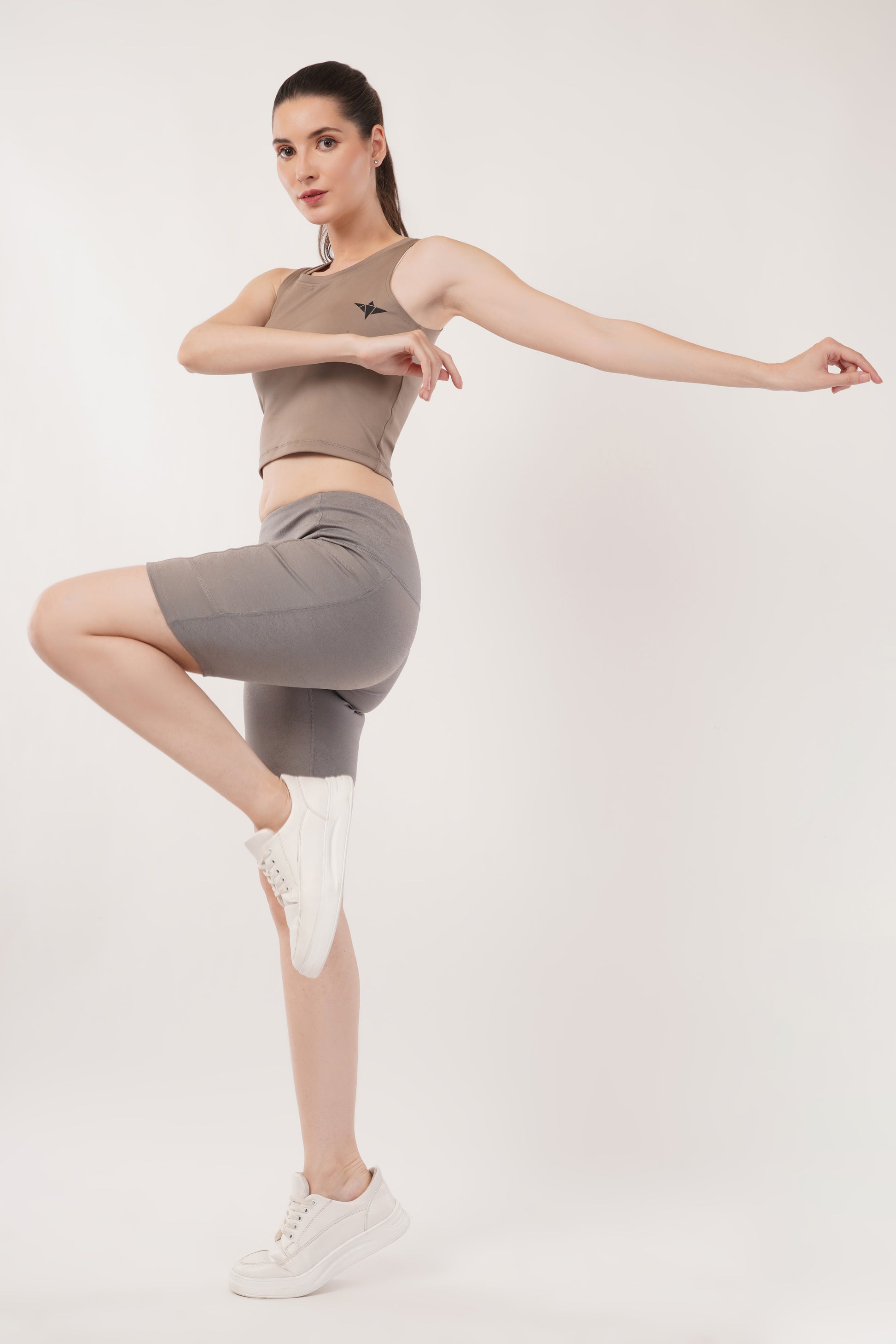 A comfortable and stylish sleeveless crop top perfect for casual wear.