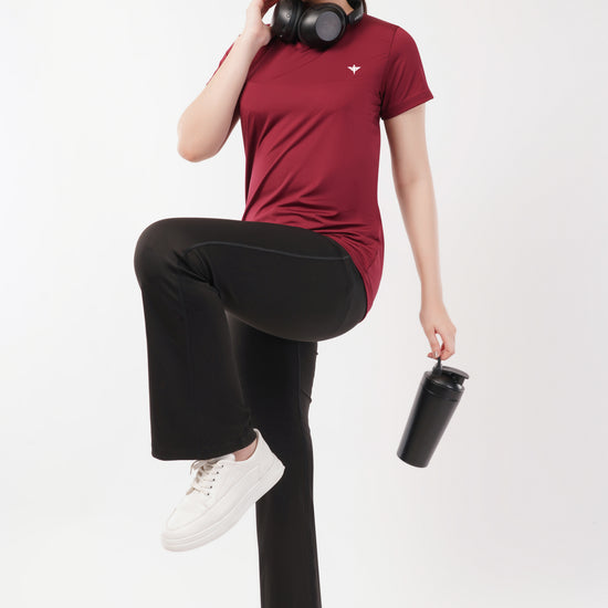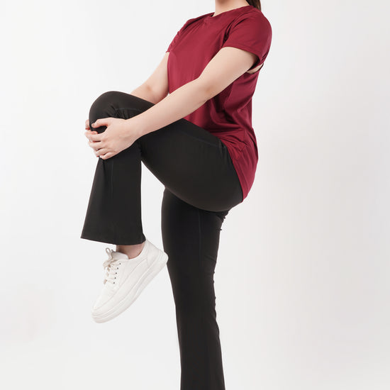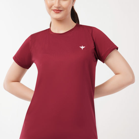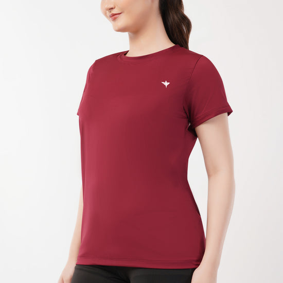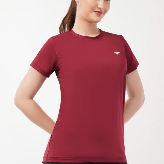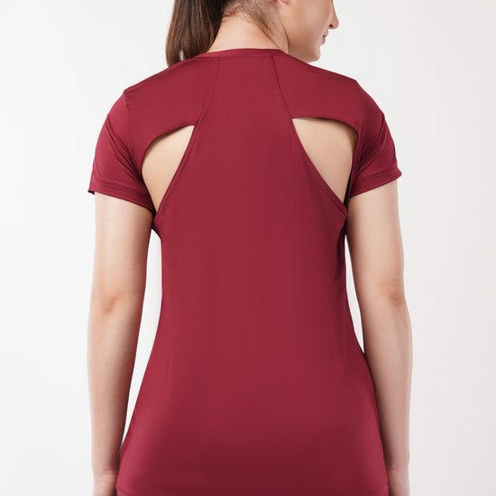 Stylish women's T-shirt with distinctive dual-cut design for a fashionable statement.
